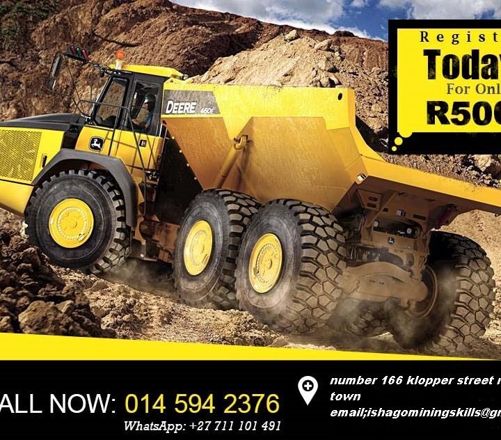 ISHAGO MINING SKILLS TRAINING COURSES The best mining and construction machinery training offers you the best training in mining skills and operators training. We help you to make a difference of your career by acquiring skills and training based on the choice of your course. We proudly help our students with free job assistance after training. Call/whatsaap ISMA ON +27711101491 E-mail: info@ ishagominingskills.com, Note: Anyone with deposit can start training and accommodation is also available for free.