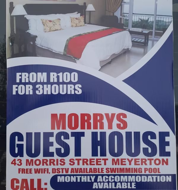 Morris Guest house in Meyerton is a modern guest house with spacious rooms and friendly staff. You will love the surroundings of this guest house. The greenery around will be a treat for your eyes. There are coffee and tea makers placed individually in each room and toiletries are provided for free. Morris Guest House is just a few minutes away. The price starts fromR200 per night. at Morrys Guesthouse we do offer monthly rentals at a discounted rate