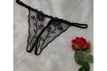 Sheer mesh open crotch thong